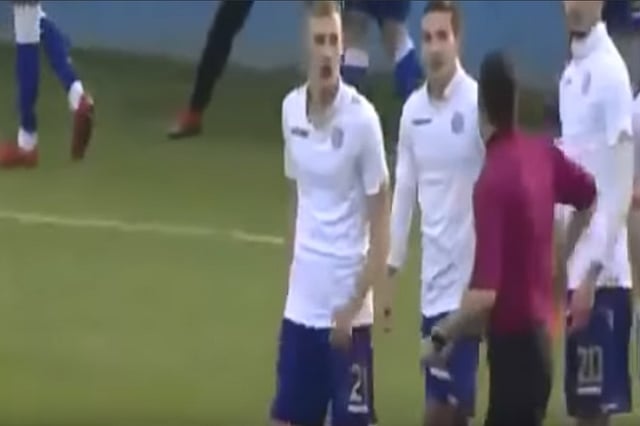 وتلقى تينو لاوس لاعب فريق هايدوك سبليت الكرواتي بطاقة حمراء أخمدت على الفور فرحته بهدفه في شباك الفريق المنافس، فغادر الملعب وترك فريقه يستكمل المباراة بعشرة لاعبين.