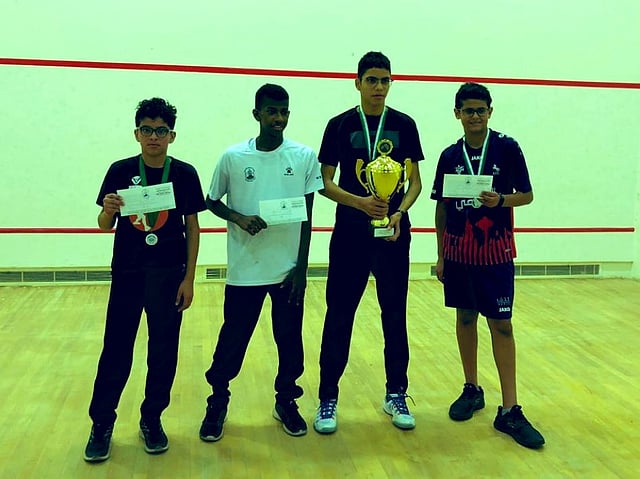 وسلم خالد السعد المدير التنفيذي لاتحاد الاسكواش، اللاعب أبو رقة كأس البطولة والميدالية الذهبية ومكافأة مالية مقدمة من اتحاد اللعبة.