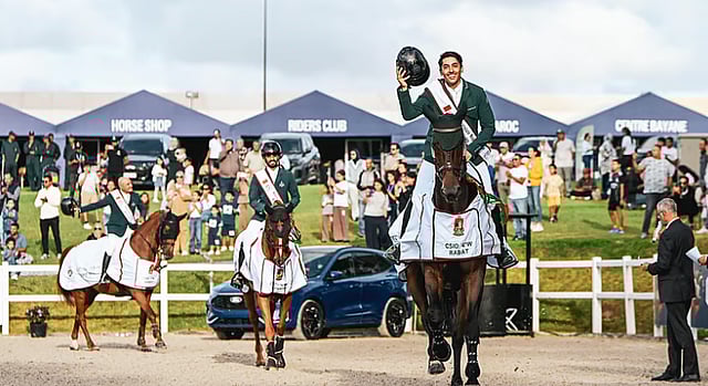 توّج فرسان المنتخب السعودي لقفز الحواجز أمس بذهبية الفرق في كأس الأمم بالمغرب للعام الثاني على التوالي بمشاركة 10 منتخبات من مختلف دول العالم على حواجز ارتفاع 155سم، فيما حلّ في المركز الثاني المنتخب الإيطالي, وجاء في المركز الثالث المنتخب البريطاني, ومثّل المنتخب كل من الفرسان رمزي الدهامي, وعبدالله الشربتلي, وعبدالرحمن الراجحي, وخالد المبطي.