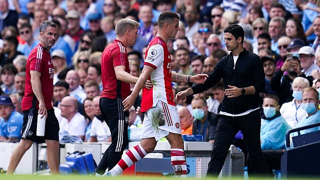 وزادت معاناة أرسنال عند الدقيقة 35 بتلقى لاعبه جرانيت تشاكا البطاقة الحمراء بعد مخالفة ضد لاعب مانشستر سيتي كانسيلو.