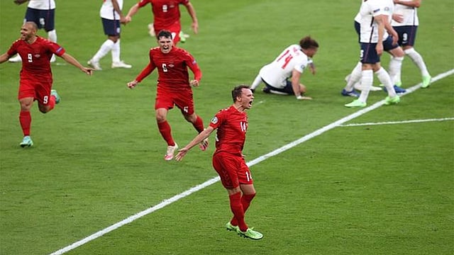 واصل منتخب إنجلترا حلمه بالتتويج بلقب كأس الأمم الأوروبية لكرة القدم (يورو 2020) للمرَّة الأولى في تاريخه، عقب فوزه المثير 2 / 1 على منتخب الدنمارك بعد التمديد، أمس الأربعاء، في الدور قبل النهائي للمسابقة القارية على ملعب (ويمبلي) العريق بالعاصمة البريطانية لندن.