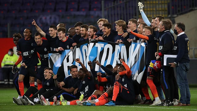 وكان حامل اللقب في حاجة إلى نقطة واحدة فقط من أجل حسم البطولة، من أجل الابتعاد بفارق لا يقبل التعويض أمام المطارد المباشر ريسنج جينك، صاحب المركز الثاني، والذي أمطر شباك أنتويرب، برباعية دون رد.