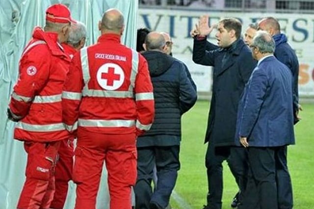 ونقلت وكالة «رويترز» عن لجنة الانضباط بالمسابقة، اليوم الجمعة، قولها: «رئيس نادي أريتسو جيورجيو لاكافا، احتاج للعلاج بالمستشفى، بعد تعرضه لركلات ولكمات من مسؤول فيتربيزي لوتشيانو كاميلي، بالقرب من نفق غرف الملابس قبل انطلاق مواجهة بينهما في ملحق الترقي».