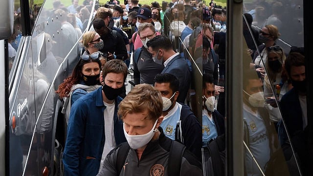 وعند الوصول، يوجه المراقبون الجماهير من الفريقين إلى جانبين متقابلين في المطار، حيث تنتظر صفوف من الحافلات لتقلهم إلى وسط المدينة، حيث أقيمت مناطق للمشجعين، وقبل الصعود للحافلة، يتلقى المشجعون أساور صفراء تثبت سلبية نتائج اختباراتهم فيروس كورونا.