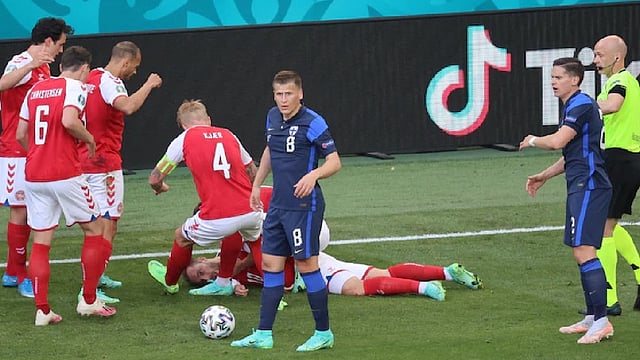 وتوقفت مباراة المنتخب الدنماركي ونظيره الفنلندي في دقائقها الأخيرة من شوطها الأول، بعدما سقط إريكسن على أرضية الملعب مغشياً عليه ودخل الجهاز الطبي سريعًا إلى أرضية الملعب برفقة فرقة الإسعاف لمحاولة إنقاذ اللاعب وسط ذعر من جميع لاعبي المنتخبين والجماهير المتواجد في المدرجات.