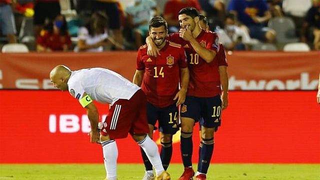 استعاد منتخب إسبانيا نغمة الانتصارات التي غابت عنه في الجولة الماضية بالمجموعة الثانية للتصفيات الأوروبية المؤهلة لبطولة كأس العالم لكرة القدم، المقررة في قطر العام المقبل، عقب فوزه الكبير 4/صفر على ضيفه منتخب جورجيا اليوم الأحد في الجولة الخامسة للمجموعة.