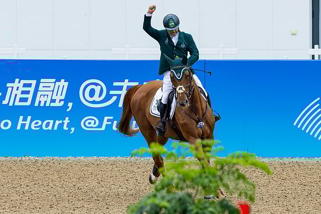 انتزع المنتخب السعودي لقفز الحواجز الميدالية الذهبية لمنافسات الفروسية، قفز الحواجز -الفرق- بعد تصدره بلا أخطاء بإجمالي زمن 111.83 ث ضمن دورة الألعاب الآسيوية الـ19.