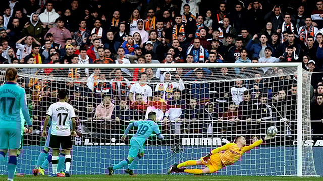 وأهدر جوميز ضربة جزاء لفالنسيا في الدقيقة 12، بعد أن تصدى لها الحارس مارك تير شتيجن الذي تألق تألقًا لافتًا في شوط المباراة الأول، وتصدى لجملة من الهجمات المحققة لأصحاب الأرض.