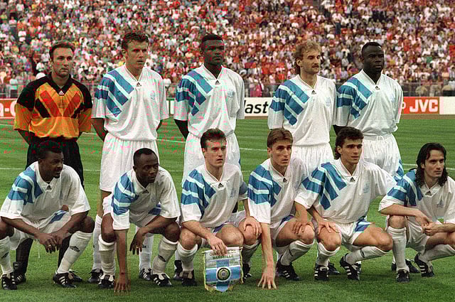 وفي عام 1993، عقب فوز مارسيليا بلقب بطولة دوري الأبطال؛ ليصبح أول فريق فرنسي يحصد هذه البطولة، تم الكشف عن ترتيب النادي لمباراته ضد فريق فالينسيان في الدوري، وهو ما أدى إلى هبوط الفريق لدوري الدرجة الثانية، وتجريده من لقب الدوري الفرنسي.