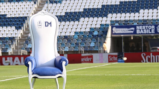 يحصل دييجو مارادونا على معاملة الملوك في نادي خيمناسيا بعدما صنع النادي عرشا للمدرب الأرجنتيني الشهير البالغ عمره 59 عامًا للجلوس عليه في المباريات التي تُقام على أرض الفريق الذي ينافس في الدوري الأرجنتيني لكرة القدم.