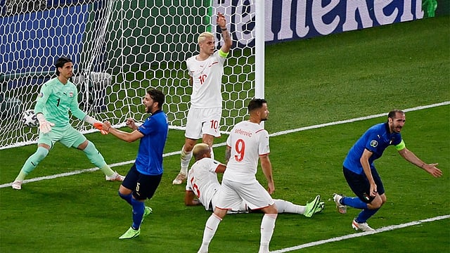 واصل منتخب إيطاليا إبداعه ببطولة كأس الأمم الأوروبية لكرة القدم (يورو 2020)، وبات أول المتأهلين لدور الـ16 للمسابقة القارية، عقب فوزه الثمين والمستحق 3 / صفر على ضيفه منتخب سويسرا، مساء الأربعاء، في الجولة الثانية لمباريات المجموعة الأولى من مرحلة المجموعات بالبطولة، التي شهدت أيضًا فوز ويلز 2 / صفر على تركيا .
