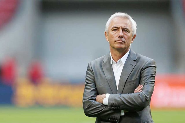 قدم الاتحاد الإماراتي لكرة القدم الهولندي بيرت فان مارفيك، المدرب الجديد للمنتخب الأول، في مؤتمر صحفي أمس الخميس، في المركز الإعلامي بملعب آل نهيان بنادي الوحدة في العاصمة أبوظبي.