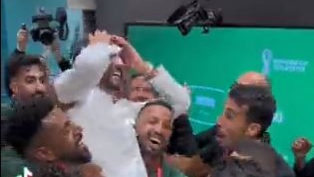 حرص وزير الرياضة الأمير عبدالعزيز بن تركي الفيصل على الاحتفال مع اللاعبين في غرفة تبديل الملابس بفوز المنتخب الوطني السعودي على نظيره الأرجنتيني ضمن مباريات كأس العالم.