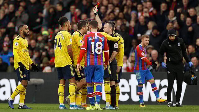 وطُرد أوباميانج في منتصف الشوط الثاني بعد استشارة حكم الفيديو المساعد عقب تدخل قوي ضد ماكس ماير مهاجم بالاس الذي خرج للإصابة.