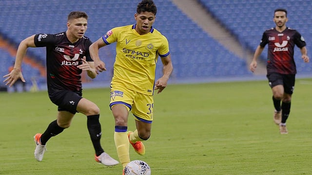 ولم يمر وقت طويل حتى تمكن النصر من تسجيل الهدف الأول عن طريق عبدالرزاق حمد الله في الدقيقة الخامسة عشرة من ركلة جزاء أثارت بعض الشكوك حول صحتها غير أن حكم الفيديو المساعد "VAR" حسم الأمر بتأكيد صحتها، ليتقدم حمد الله ويسدد الكرة في الشباك بطريقة جميلة.