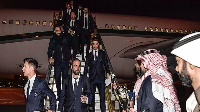 وصلت فجر اليوم السبت إلى مطار الملك خالد الدولي بالرياض، بعثة نادي يوفنتوس الإيطالي، استعدادًا لمباراة السوبر الإيطالي التي ستجمع بين رفاق كريستيانو رونالدو ونادي لاتسيو غدًا الأحد على ملعب جامعة الملك سعود بالرياض.
