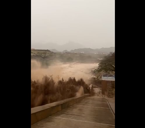 كما تداول رواد مواقع التواصل الاجتماعي مقطع فيديو وثق سيول عارمة تجرف قطيعاً من الإبل في وادي ضمد بمنطقة جازان.