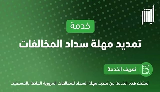 أتاح المرور السعودي خدمة تمديد مهلة سداد المخالفات المرورية وفق المادة (75) من نظام المرور عبر منصة أبشر دون الحاجة إلى مراجعة مقاره.