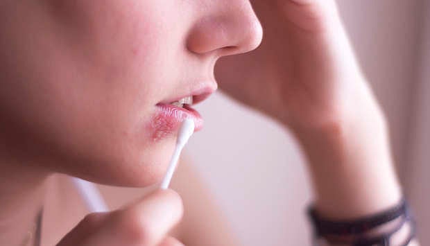3- بثور مملوءة بالسوائل مؤلمة على الشفاه أو تحت الأنف.