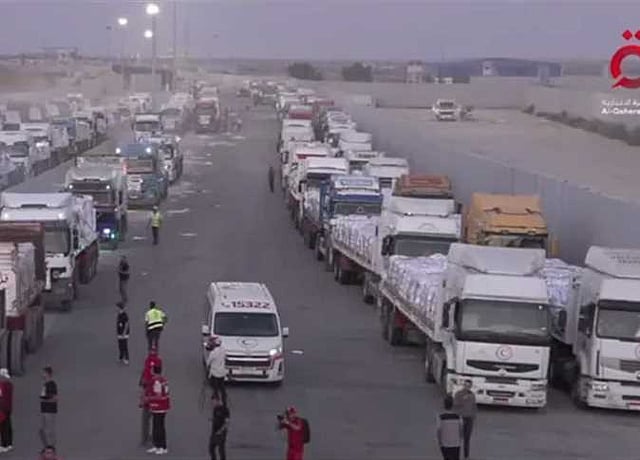 تحركت، اليوم الأحد، شاحنات المساعدات الإنسانية والإغاثية، إلى معبر كرم أبوسالم جنوب مدينة رفح، من أمام معبر رفح البري، تمهيدًا للدخول إلى قطاع غزة.