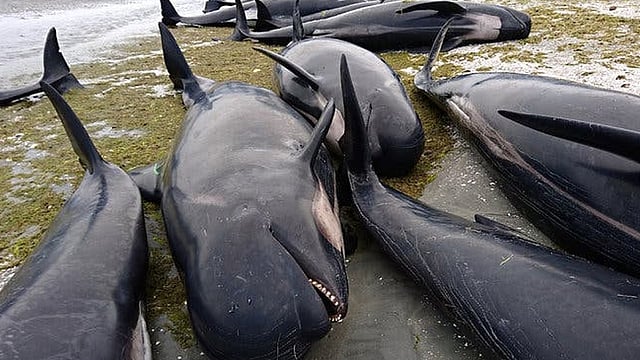كل عام تطفو آلاف الحيتان والدلافين والحيوانات البحرية الأخرى على الشواطئ حول العالم، وتُسمى جنوح الحيتان التي تؤدي إلى نفوقها بشكل ملحوظ بسبب التلوث الضوضائي والصيد الجائر، مما يؤدي إلى تلوث البيئة.