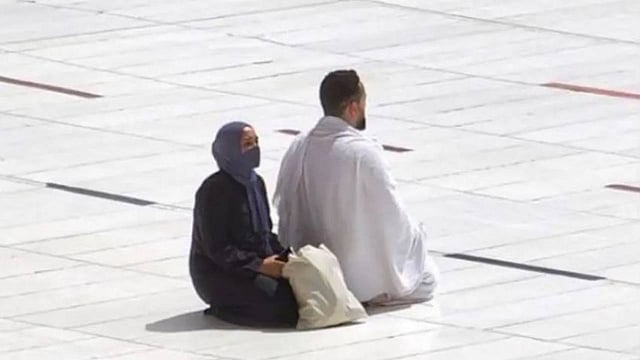 وتداول رواد مواقع التواصل الاجتماعي، صورة من داخل الحرم المكي، وظهر فيها شاب وهو يصلي، وخلفه فتاة تجلس على ركبتيها، وتتظلل بظله من الشمس التي يبدو أنها لم تتحمل حرارتها.