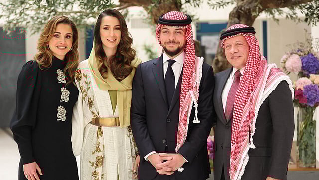 أعلن الديوان الملكي الأردني مساء اليوم، الأربعاء، خطوبة الأمير الحسين بن عبد الله الثاني، ولي العهد، على الآنسة رجوة خالد بن مساعد بن سيف بن عبدالعزيز آل سيف، بحضور ملك الأردن عبدالله الثاني، والملكة رانيا العبدالله.