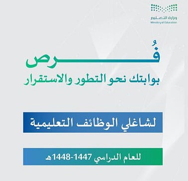 أعلنت وزارة التعليم عن فتح التقديم لشاغلي الوظائف التعليمية للعام الدراسي 1447-1448هـ عبر نظام فارس.