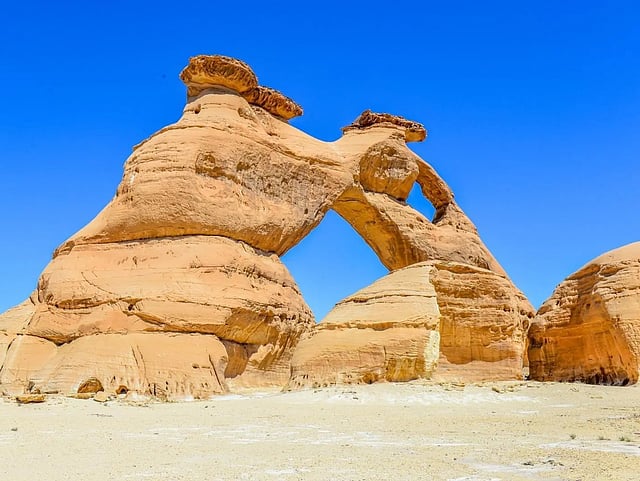 بتجويفات صخرية ممزوجة بالرمال الذهبية يحكي جبل "محجة" تاريخ وثقافة منطقة حائل ليصبح بذلك من المعالم الطبيعية البارزة في المنطقة.