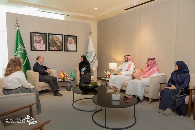 وجرى خلال اللقاء بحث فرص التعاون بين المملكة وإسبانيا في مجالات السياحة، والتدريب، وتبادل الخبرات، بما يعزز العلاقات الثنائية ويدعم تطور القطاع السياحي في البلدين الصديقين.