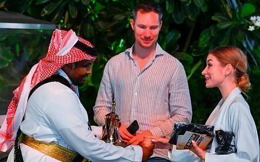 وشكلت محطات القهوة السعودية إحدى أبرز المحطات الجاذبة لزوار المهرجان من مختلف الجنسيات، حيث قُدمت القهوة بعدة نكهات تمثل تنوع مناطق المملكة، إلى جانب التمور التي تعد جزءًا أصيلًا من الضيافة المحلية، وشملت التجربة تعريفًا بمكونات القهوة وطرق إعدادها التقليدية، وكذلك الطقوس المرتبطة بتقديمها واستقبالها.