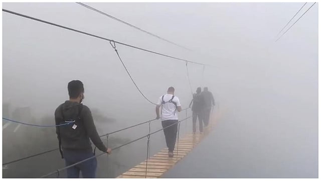 واصل زوار الباحة الاستمتاع بأجوائها الخلابة، والعبور فوق ممشى السحاب.