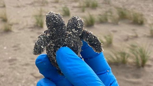 وعثر ضباط الدورية والمتطوعون على ثلاث فقسات سلحفاة حية لا تزال في الغرفة، لكن فقس واحد، على وجه الخصوص، برز لأن له رأسين.