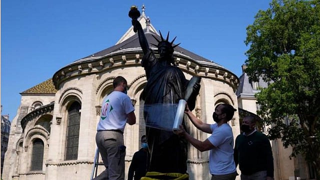بدأت نسخة مصغرة لتمثال الحرية كانت محفوظة في متحف الفنون والحرف «آر إى ميتيييه» في باريس، رحلتها إلى مقر إقامة السفير الفرنسي لدى الولايات المتحدة حيث يفترض أن تصل في 14 يوليو، وستقام حفلة لاستقباله بحضور نحو 60 ألف متفرج في حديقة سنترال بارك، في مانهاتن بمدينة نيويورك.