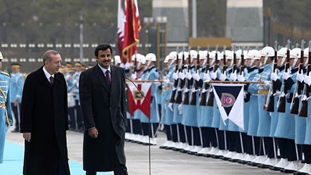 ودخلت الدوحة وأنقرة في تحالف عسكري اقتصادي خلال السنوات الثلاث الماضية؛ حيث تتواجد قوات تركية لحماية العرش القطري، فيما تدفع الإمارة الخليجية المليارات لتأمين تحالفها الاستراتيجي مع أردوغان، ووفق مراقبين تعمل تركيا على توسيع نفوذها العسكري، فيما تساندها الدوحة بقوة ودعم مالي من الخزينة الحكومية، فيما يعتبر أردوغان سوريا وليبيا ملعبين مهمين، فضلًا عن تحركات أخرى في الشرق الأوسط وإفريقيا حسب الصحيفة الألمانية.