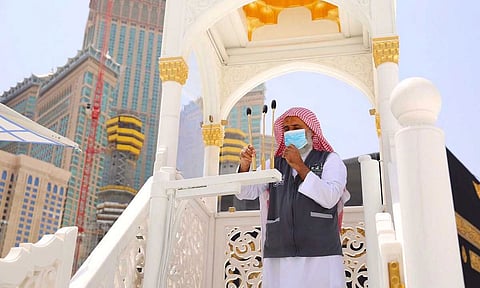 كما يتم تطهير وسجاد بالمسجد الحرام لتطهير وتعطير المسجد الحرام مستخدمين أجود أنواع المطهرات والمعطرات الصديقة للبيئة التي جلبت خصيصًا للمسجد الحرام
