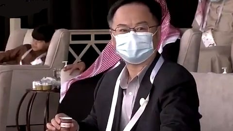وتناول سفير الصين، خلال حضوره الفعاليات، القهوة العربية، وسط تطبيق للإجراءات الاحترازية لفيروس كورونا، مثل ارتداء الكمامة والتباعد الاجتماعي.