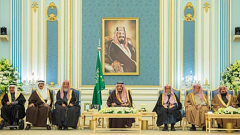استقبل خادم الحرمين الشريفين الملك سلمان بن عبدالعزيز، اليوم الاثنين، أصحاب السمو الأمراء، وسماحة مفتي عام المملكة، وأصحاب الفضيلة العلماء، وجمعاً من المواطنين الذين قدموا للسلام عليه.