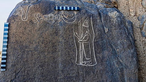 وقال وزير الثقافة عبر حسابه على موقع «تويتر»: «اكتشاف أثري جديد: نقوش صخرية تعود للملك البابلي نابونيد في حائل؛ لبلادنا دور تاريخي وتواصل قديم مع معظم حضارات الشرق الأدنى القديم».