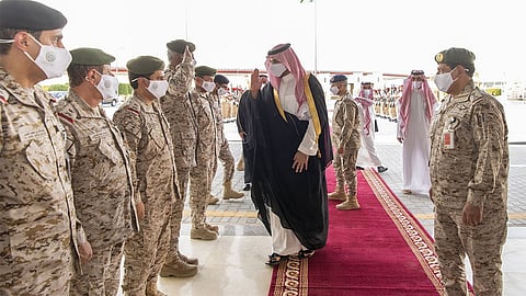ولدى وصوله مقر قيادة القوات البرية، أُقيمت مراسم استقبال رسمية ترحيبًا به، حيث كان في استقباله رئيس هيئة الأركان العامة الفريق الأول الركن فياض بن حامد الرويلي، وقائد القوات البرية الفريق الركن فهد بن عبدالله المطير.