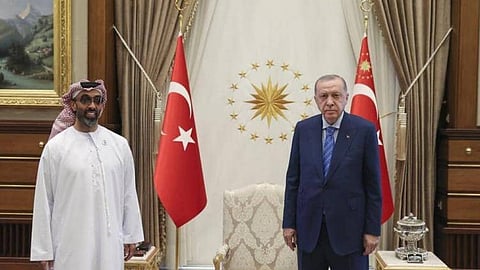 استقبل الرئيس التركي، رجب طيب أردوغان، الأربعاء، وفدًا إماراتيًا برئاسة الشيخ طحنون بن زايد آل نهيان، مستشار الأمن الوطني الإماراتي.