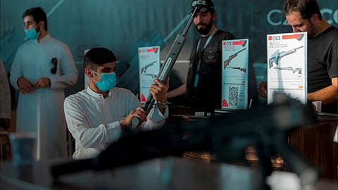 ويحتضن المعرض في دورته الثالثة لهذا العام كبرى الشركات المحلية والدولية المتخصصة بصناعة أسلحة الصيد، حيث يمكن معاينتها، ثم شراء أحدث أنواع الأسلحة من منصة نادي الصقور السعودي الإلكترونية؛ شريطة أن يحمل المشتري ترخيصاً للسلاح من قبل وزارة الداخلية، ويمكن من خلال المنصة شراء الأسلحة والذخائر، وإصدار ترخيص حمل أو اقتناء رخصة السلاح، ويتسلم المشتري السلاح والذخيرة خلال فترة تبدأ من 25 أكتوبر حتى 31 ديسمبر المقبل، بالمنطقة المخصصة للتسليم في أرض النادي بملهم، وذلك بعدد 200 إلى 400 موعد تسليم يوميًا، يُشعر به العميل عبر رسائل نصية بالمواعيد المتاحة.