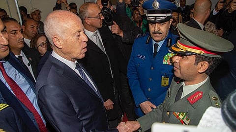 واستعرض فريق القوات الجوية الملكية السعودية «الصقور السعودية»، قدراتهم أمام الرئيس التونسي قيس سعيّد ونخبة من رجال الدولة، والمشاركين في المعرض من 40 دولة عربية وأجنبية.