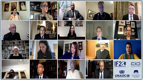 وكان منتدى القيم الدينية السابع لمجموعة العشرين للعام 2020 الافتراضي -الذي ينظمه مركز الملك عبدالله بن عبدالعزيز العالمي للحوار بين أتباع الأديان والثقافات وتحالف الشركاء الدوليين- قد انطلق أمس بالرياض بجلسة عامة، أتبعها بثلاث حلقات متزامنة تدور حول دور الدين في بناء السلام والإسهام في منع وحل النزاعات، والتراث الثقافي والكرامة الإنسانية والتنمية المستدامة، والاتجار بالبشر والعبودية الحديثة، تحدث فيها عدد كبير من القيادات الدينية والباحثين والعلماء.