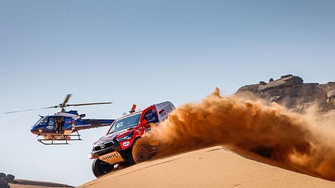 نجح البطل السعودي يزيد الراجحي في التقدم إلى المركز الرابع عقد ختام منافسات المرحلة الثانية «بيشة - وادي الدواسر» من رالي داكار السعودية 2021.
