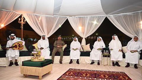 وتضمّنت الملحمة لوحة أدبية كتبتها صالحة حكمي للتعريف بشعراء جازان محمد بن أحمد العقيلي ومحمد بن علي السنوسي وعلي بن أحمد النعمي وأحمد بن إبراهيم الحربي وبتاريخهم الأدبي المليء بالقصائد الوطنية لتعريف، حيث استمع الحضور لعدد من القصائد التي تغنى بها الشعراء حباً في هذا الوطن وقياداته الحكيمة .