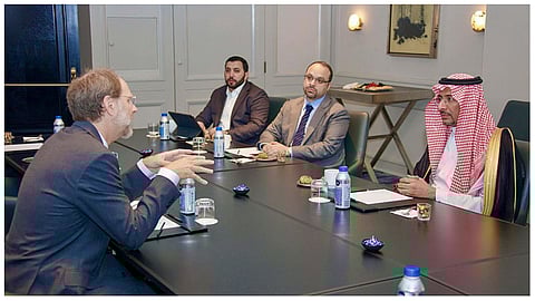 بحث وزير الصناعة والثروة المعدنية بندر بن إبراهيم الخريف، مع مدير عام هيئة المسح الجيولوجي الأمريكية، ديفيد آبلغيت، تعزيز مجالات التعاون بين البلدين في قطاع التعدين.