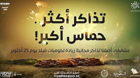 وقال تركي آل الشيخ عبر حسابه على موقع «تويتر»: «الدخول لمنطقة كومبات فيلد مجاني يوم 25 أكتوبر، وعشان الكل يعيش معنا فعاليات المنطقة الجديدة، زودنا عدد التذاكر».