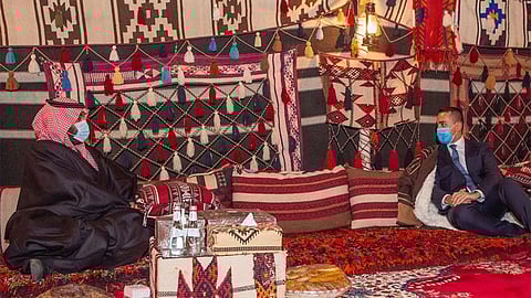 التقى صاحب السمو الملكي الأمير محمد بن سلمان بن عبدالعزيز ولي العهد نائب رئيس مجلس الوزراء وزير الدفاع، في مخيمه بالعُلا، وزير الخارجية والتعاون الدولي بجمهورية إيطاليا/ لويجي دي مايو.