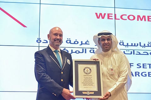 وقال الحقباني: «حصلنا على هذه الشهادة نظير إدارتنا أكبر غرفة قيادة تحكم للعنايات المركزة بعدد 796 سريرًا، وهو أكبر عدد لأسرَّة طبية على مستوى العالم، تتم من خلاله متابعة الحالات المرضية والحرجة والطارئة أولًا بأول، وفي جميع مستشفيات المجموعة بالخليج العربي».